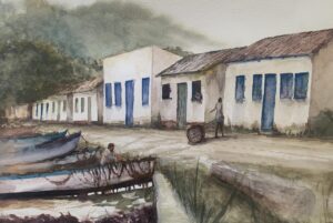 Desde 2017, me dedico à criação de pinturas que retratam cenas históricas, especialmente de Búzios, minha cidade natal. Utilizando depoimentos, documentos e testemunhos, reconstituo momentos da história de Búzios em óleo e aquarela.